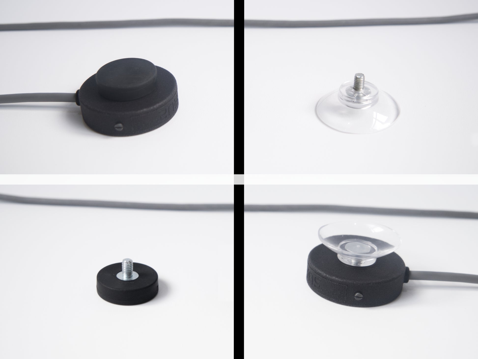 Warning: when using the screw hole in the microphone, use ONLY the provided accessories (magnet and suction cup). Other clips might have a longer screw, which will damage the microphone permanently.